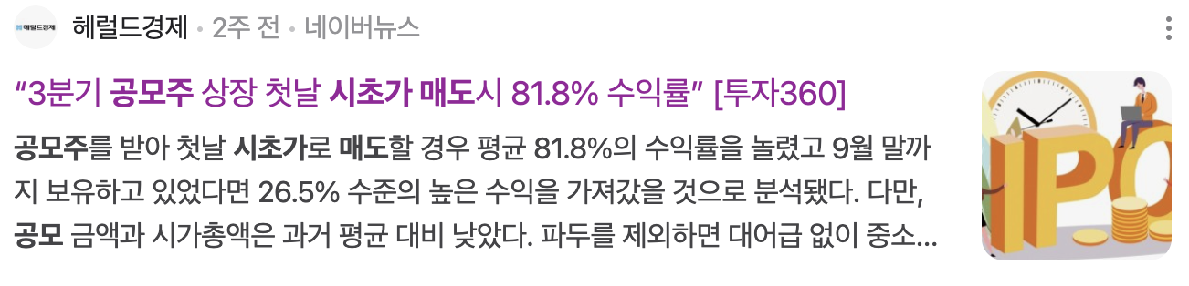 공모주 시초가 매도방법 및 수익률이 높은 이유