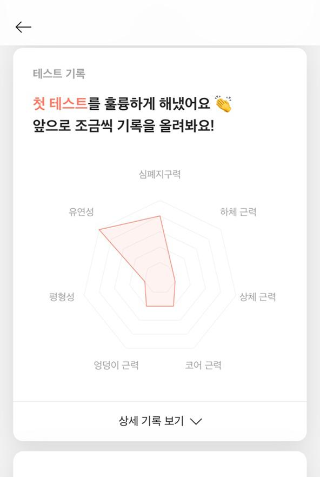 먼저, 다노 어플을 다운로드하여주시면, 체력테스트를 할 수 있어요! 여러 가지 테스트를 통해서 운동 능력 레벨을 측정해줍니다. 저는 레벨 2를 판정받았어요...! 다노핏 참가자 중 하위 40%라고 하네요. 생각난 김에 포스팅 다 하고 다시 한번 테스트해봐야겠어요!