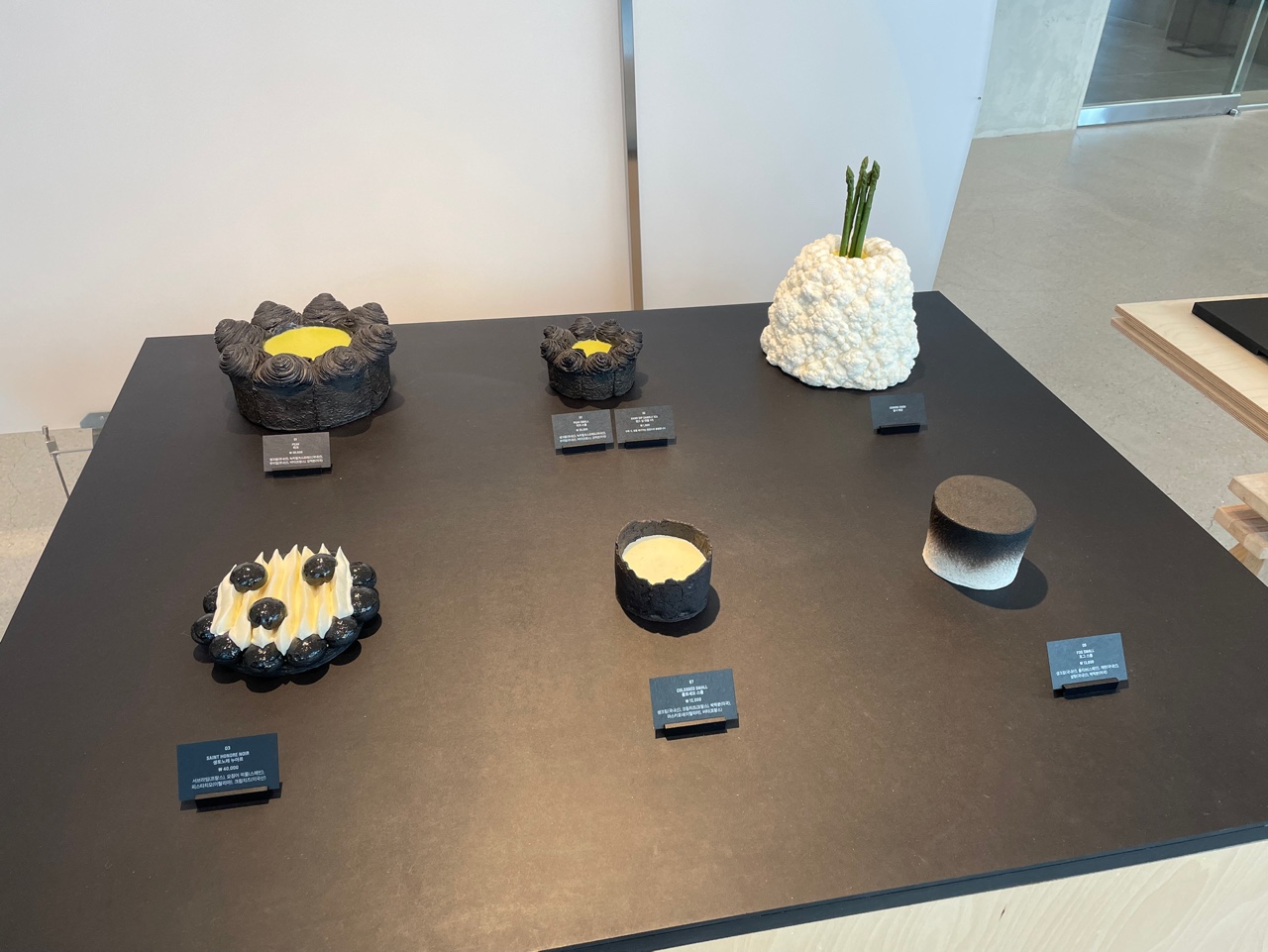 누데이크는 압구정 도산공원에서 핫한 카페라고 해요! 사실 누데이크가 유명한 카페인지는 검색해보고 알았는데요, 젠틀몬스터랑 같은 계열이라고 하더라고요! 그래서 그런지 카페 컨셉도 아주 독특했어요. 내부도 상당히 감각적으로 꾸며놓았고, 특히 디저트들이 블랙이 컨셉인지 전체적으로 블랙이더라고요! 블랙 디저트를 실제로 보니까 조금 식욕을 감퇴시키긴 했습니다..(?) 특히 오른쪽 사진에 블랙 크로와상은 말이죠....(생략)