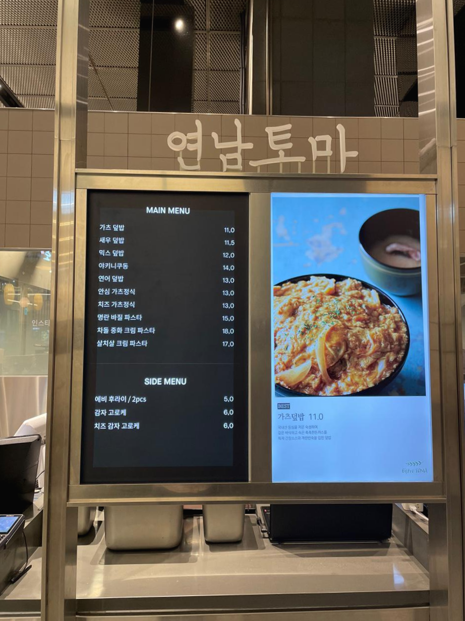 이곳은 상호명에서도 알 수 있듯이 연남동에서 웨이팅이 엄청나다는 연남토마입니다. 저도 연남동 갔을때 여러번 가려고 시도했는데 웨이팅이 어마무시하다그래서 도전해보지 못한 곳인데 동탄 롯데백화점에 있어서 너무 반가웠어요! 그리고 식품관의 장점을 이용해 친구랑 각자 다른 걸 시켜먹었어요~ 매장에 앉는 자리 말고도 따로 먹을 자리가 꽤 있으니 참고하시면 좋을 거 같아요!