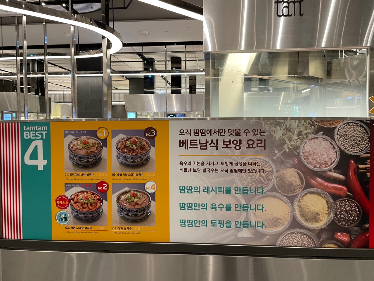 지하 식품관에 매장이 진짜 많은데요. 그중에서 강남에서 줄 서서 먹는다는 이미 유명한 쌀국수 맛집 땀땀! 저도 쌀국수를 진짜 좋아하는데요, 여기는 특히 소곱창쌀국수가 맛있다고 해서 먹어봤어요.