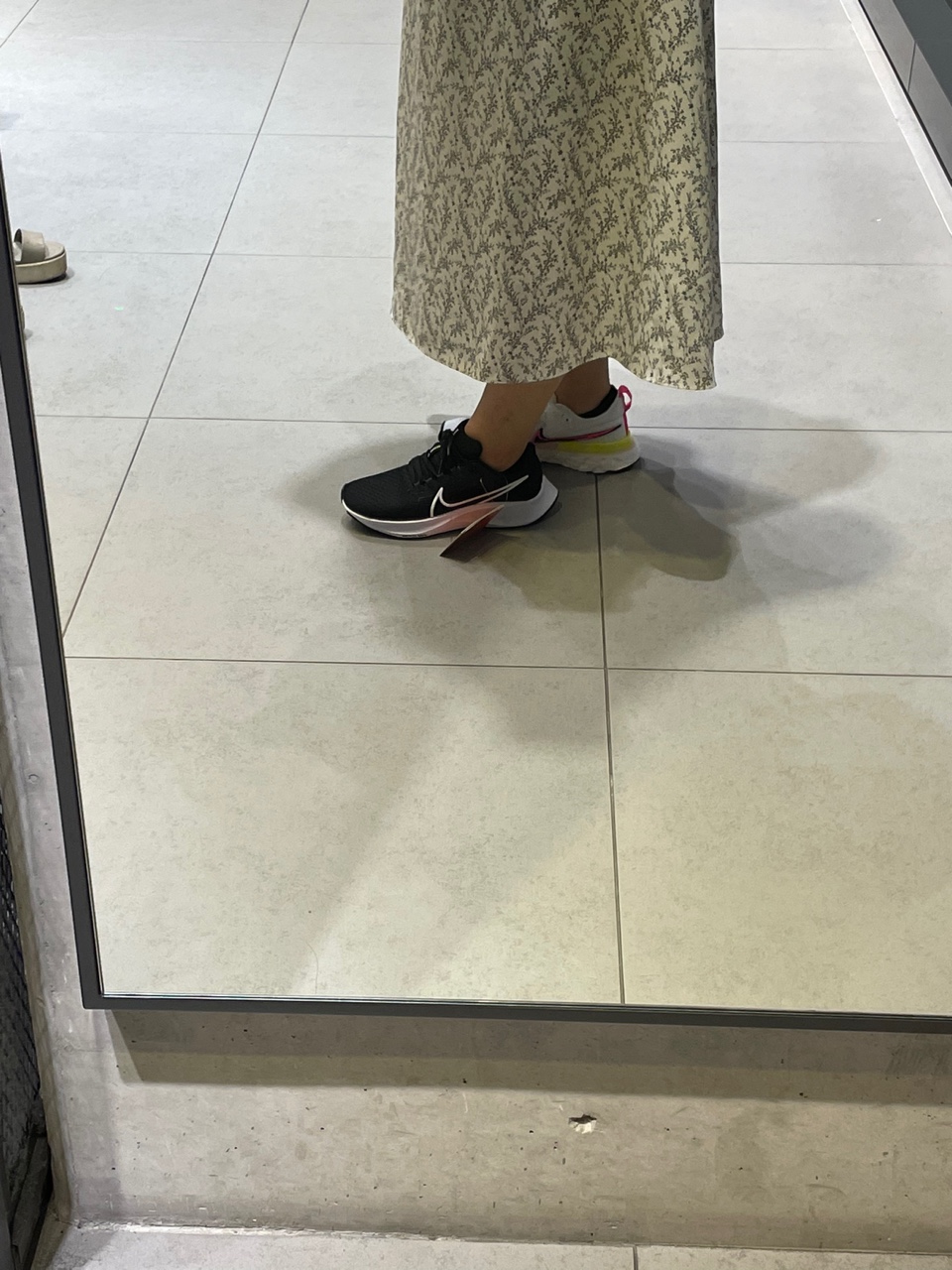 왼쪽) 나이키 인피니트런 플라이니트 - 이 제품은 추천이 진짜 많은 제품이었는데, 실제로 신어보니까 니트 재질? 이 확실하게 쪼여주더라고요. 근데 저는 답답한 느낌이 싫더라고요. 역시 매장 가서 신어 보길 잘했다고 생각했어요!