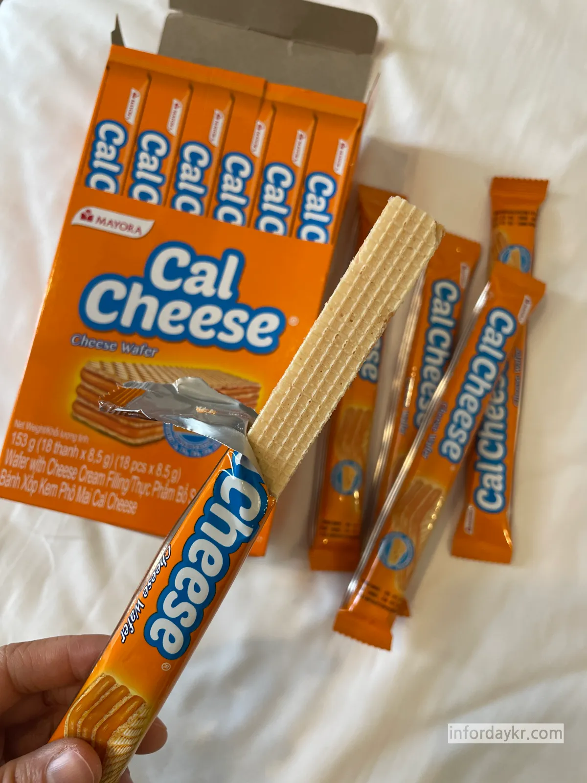 이 과자는 나트랑에 다녀온 친구들이 하나같이 다 강력추천 한 과자입니다. 그래서 저도 추천받고 구매해서 먹어봤는데 진짜 맛있더라고요! 고소한 치즈 맛이 나는 과자입니다. 무조건 사야 하는 과자입니다.