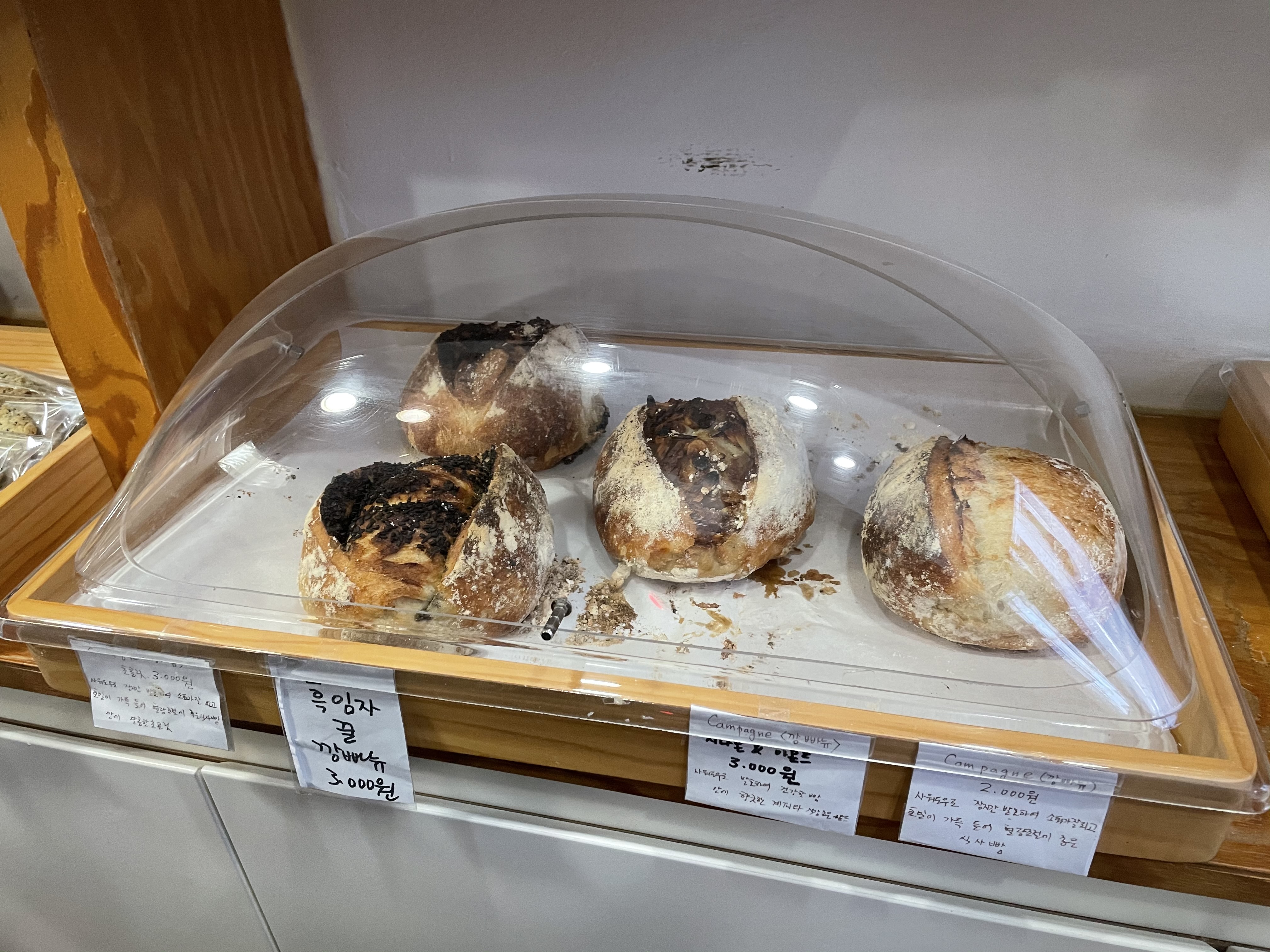 앞에 빵 표지판 위에 '건강한' 이라는 글자 보셨나요!?