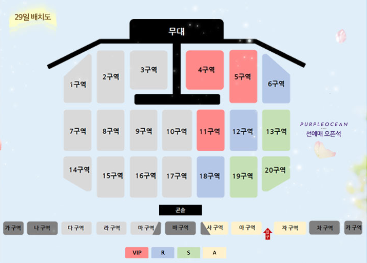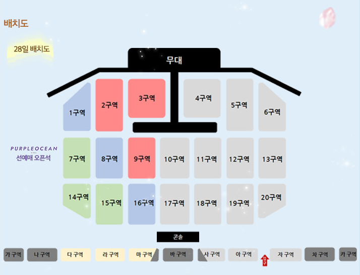 28일, 29일 배치도입니다. 공식 팬클럽 선예매 오픈석이 다르니 참고해주세요!
