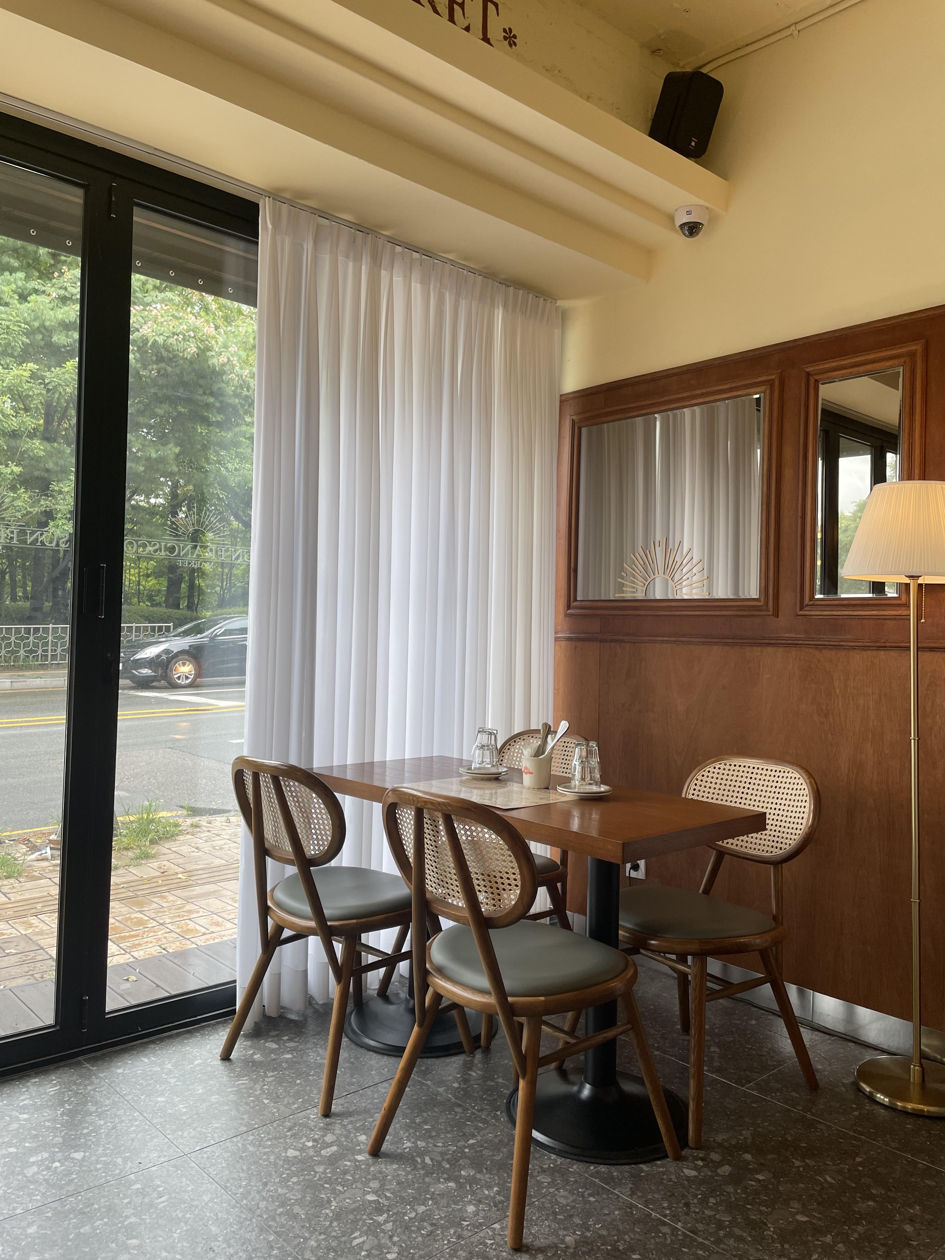 저희 자리에서 바라본 창가자리에요 바로 앞에 공원이 있어서 창문 너머로 보이는 나무들 때문에 푸릇푸릇해서 기분이 좋았어요:)그리고 메뉴가 다 맛있더라구요! 다음에 또 재방문 의사 있습니다! 영통역 주변 가신 분들 꼭 가보시길 바래요:)