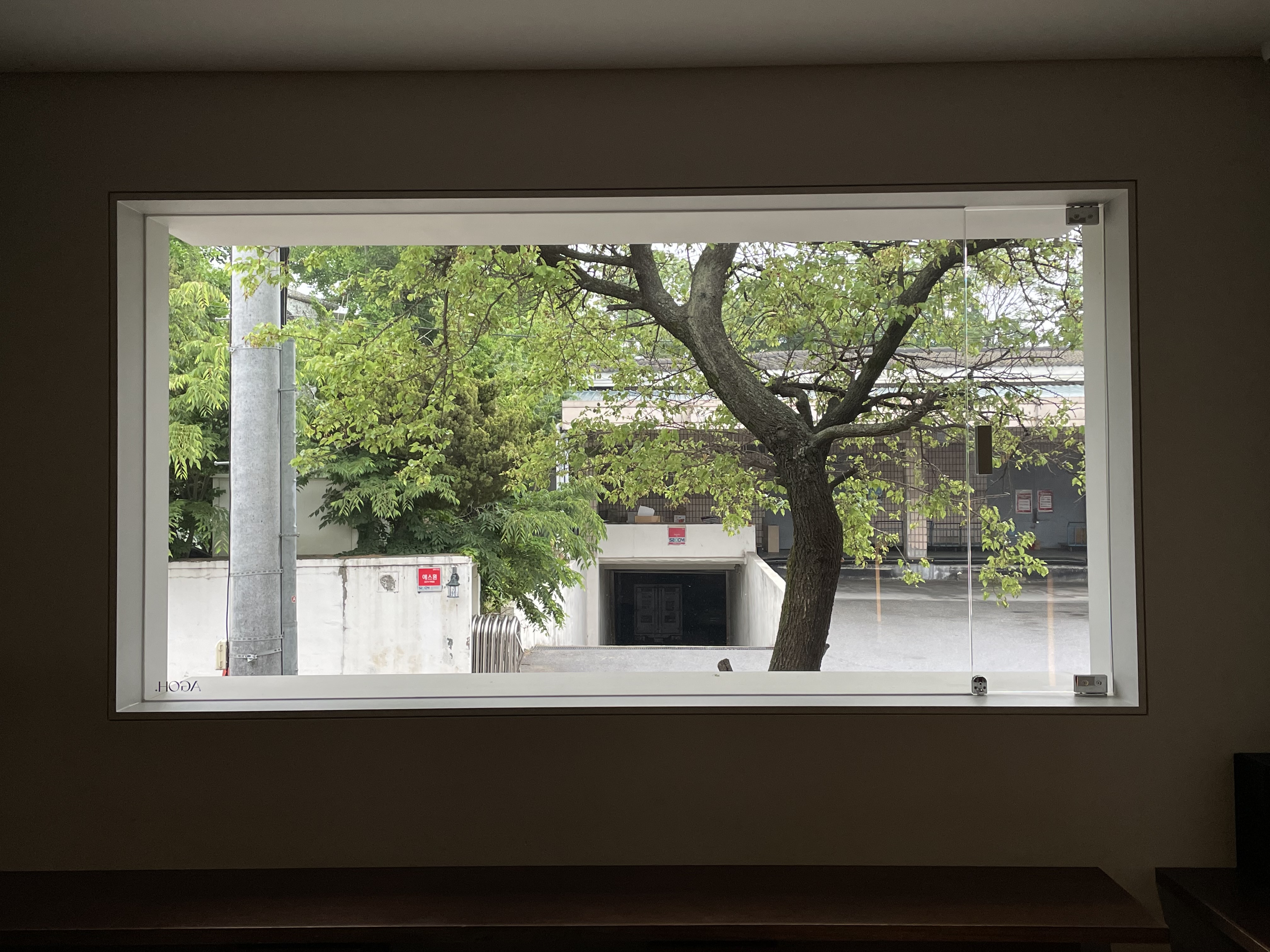 내부로 들어서면, 큰 창으로 푸른 나무가 보이는 게 매력적인 공간이었어요!