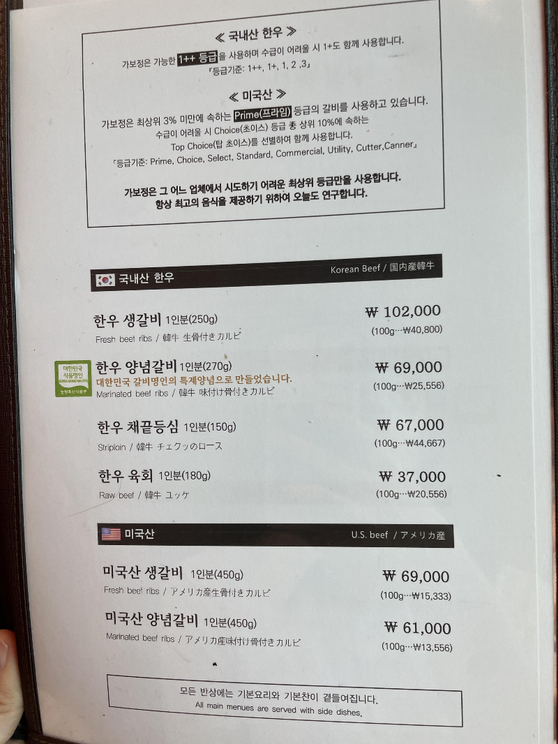 미국산 또한 최상의 3% 미만에 속하는 프라임 등급의 갈비를 사용하고 있다고 합니다.
