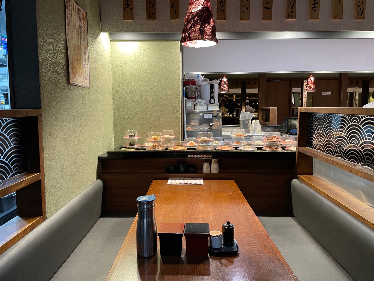 매장 안쪽에 자리 잡고 있는 회전초밥을 먹을 수 있는 좌석이에요! 좌석이 그리 많지는 않았지만, 넓고 깔끔하고 또 사람이 별로 없었어서 좋았어요!