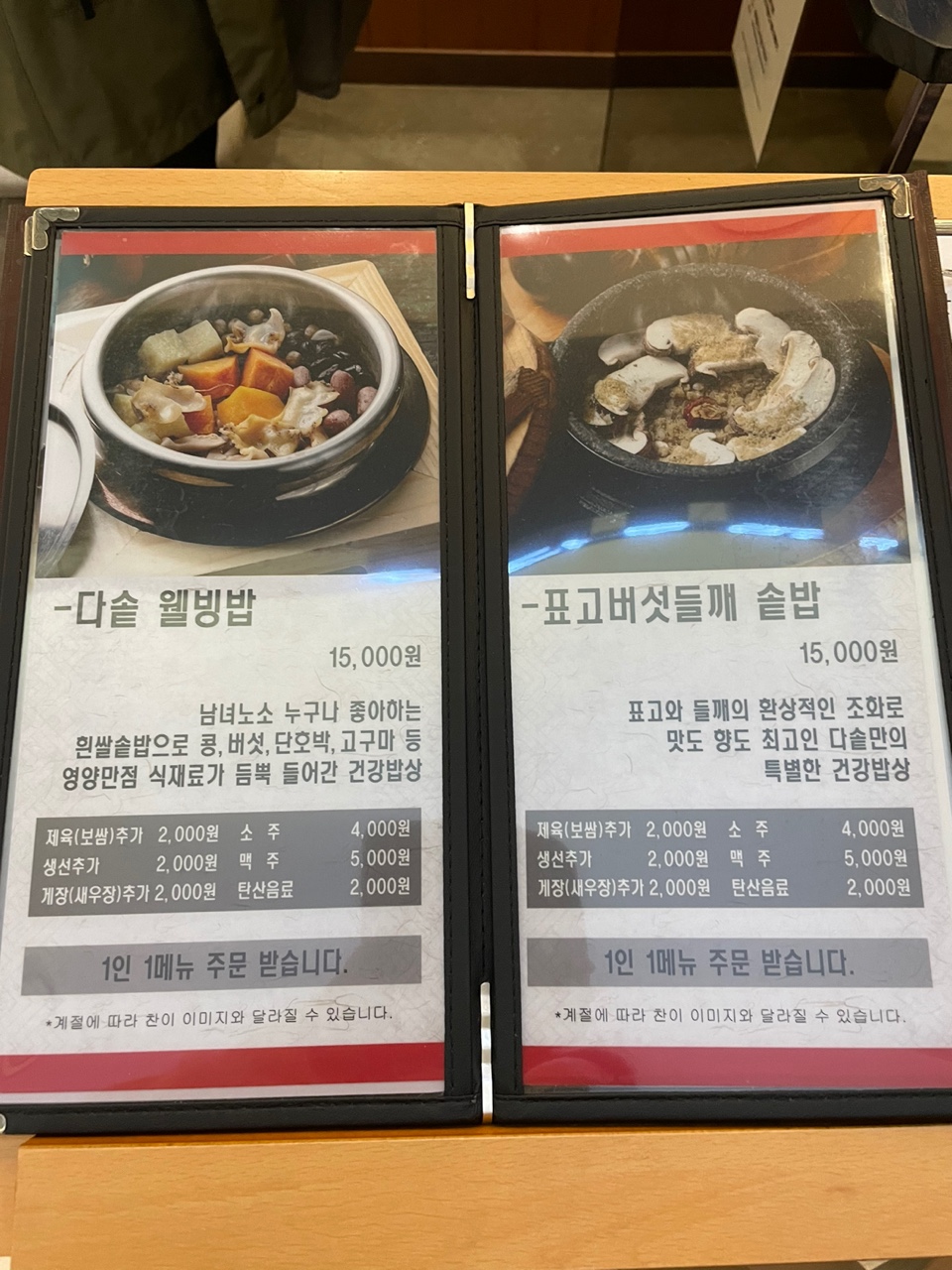 제 기준인지 모르겠지만, 요새 솥밥이 핫하잖아요! 집에서 직접 해드시는 분들도 많고, 그리고 다솥에 와규스테이크 솥밥이 있어서 기대를 품고 갔습니다. 또 다른 메뉴들도 보여드릴게요!