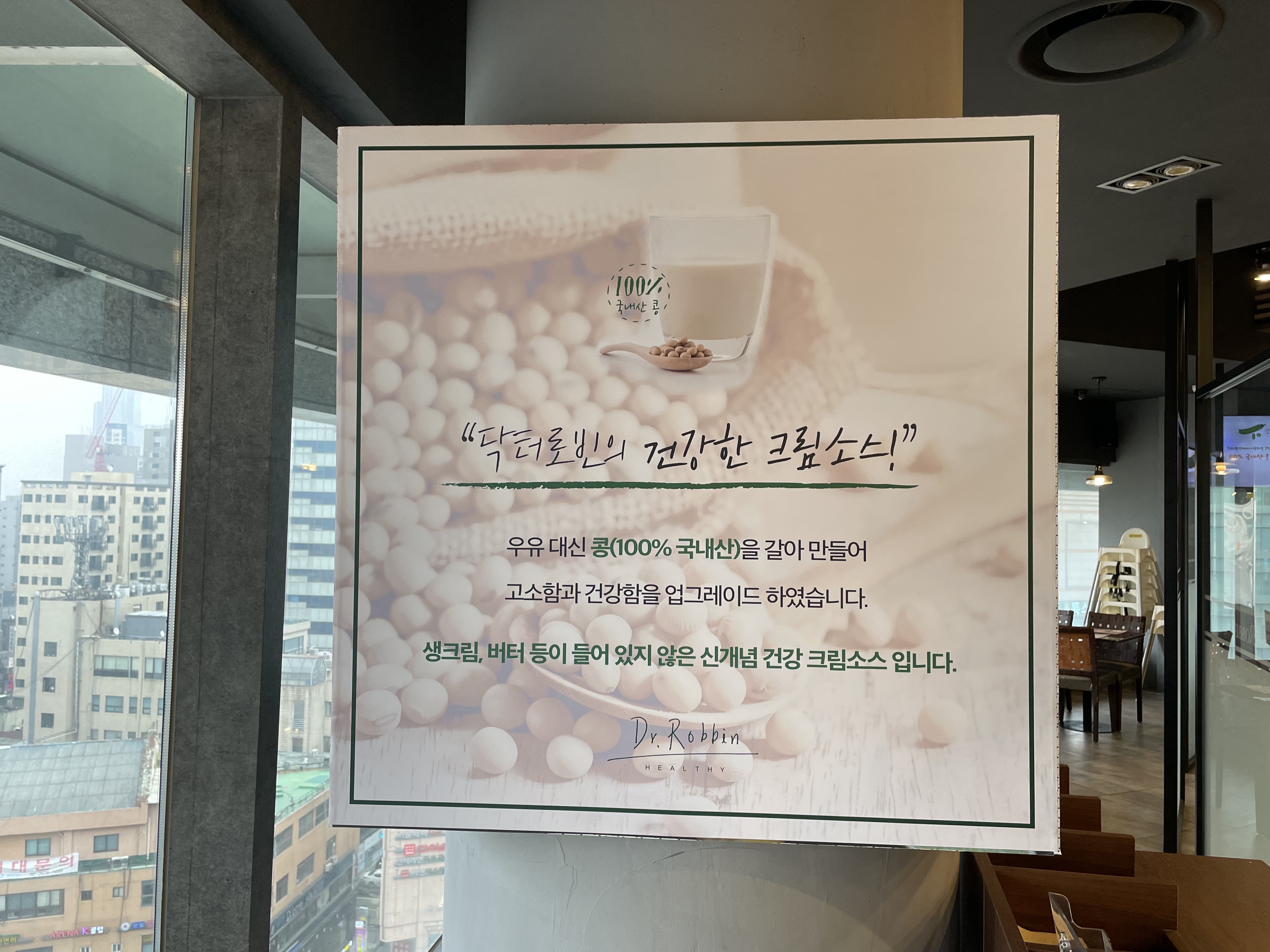 또 닥터로빈 크림소스는, 우유대신 100% 국내산 콩을 갈아 만들었다고 합니다.