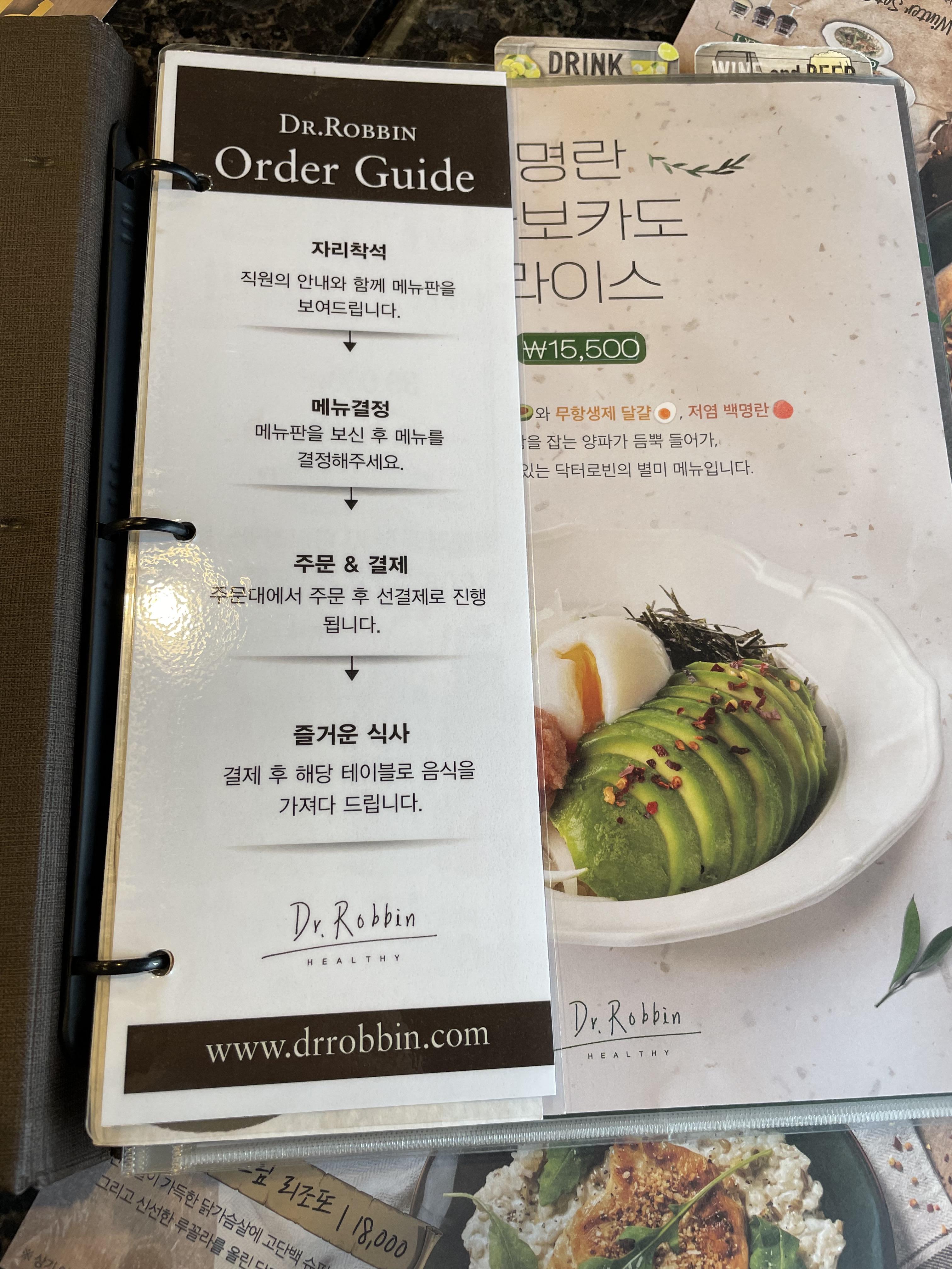 닥터로빈은 선결제 시스템이에요! 메뉴판을 가져다주시면, 메뉴를 고르고 카운터 가서 계산하면 됩니다.