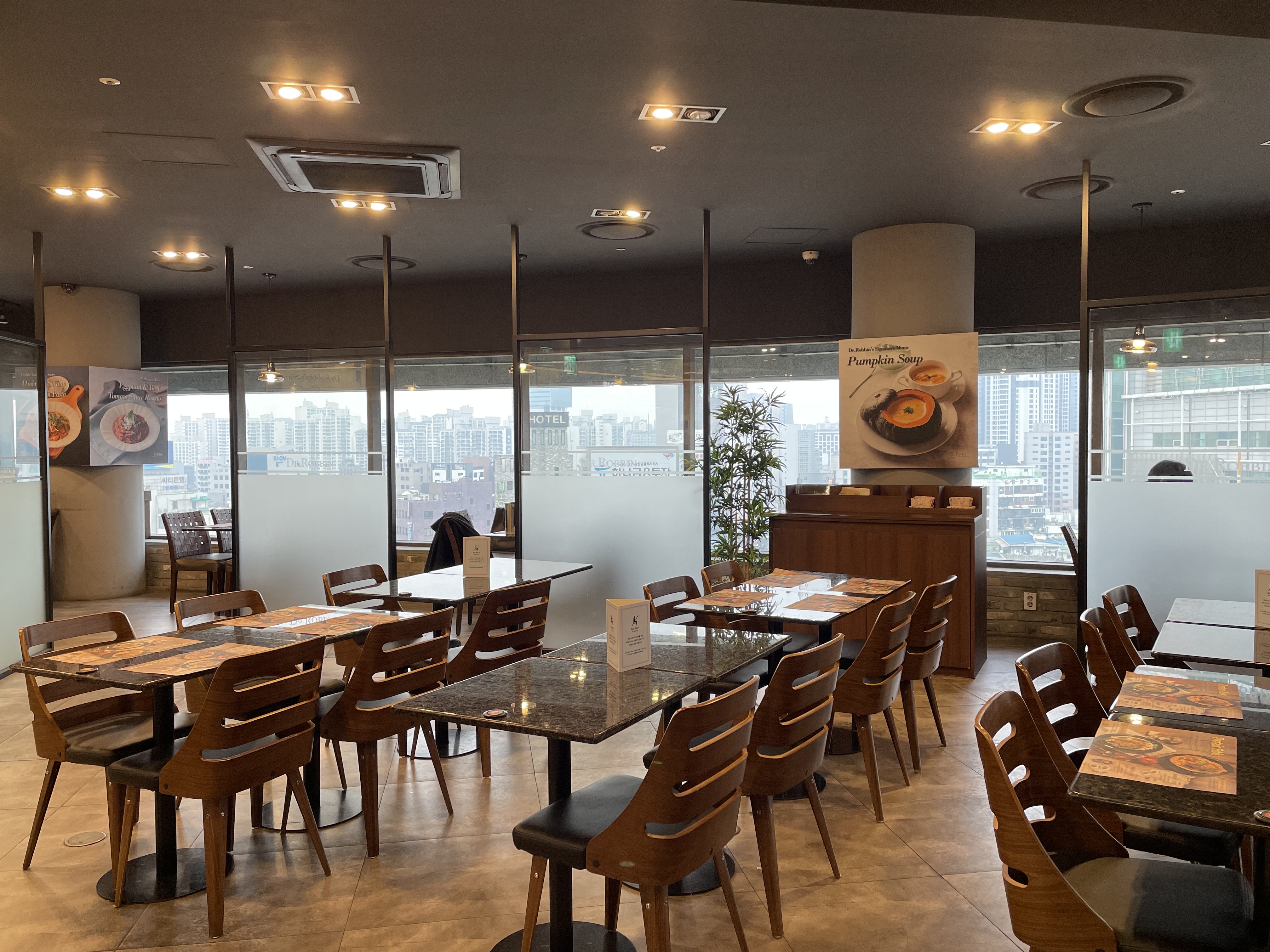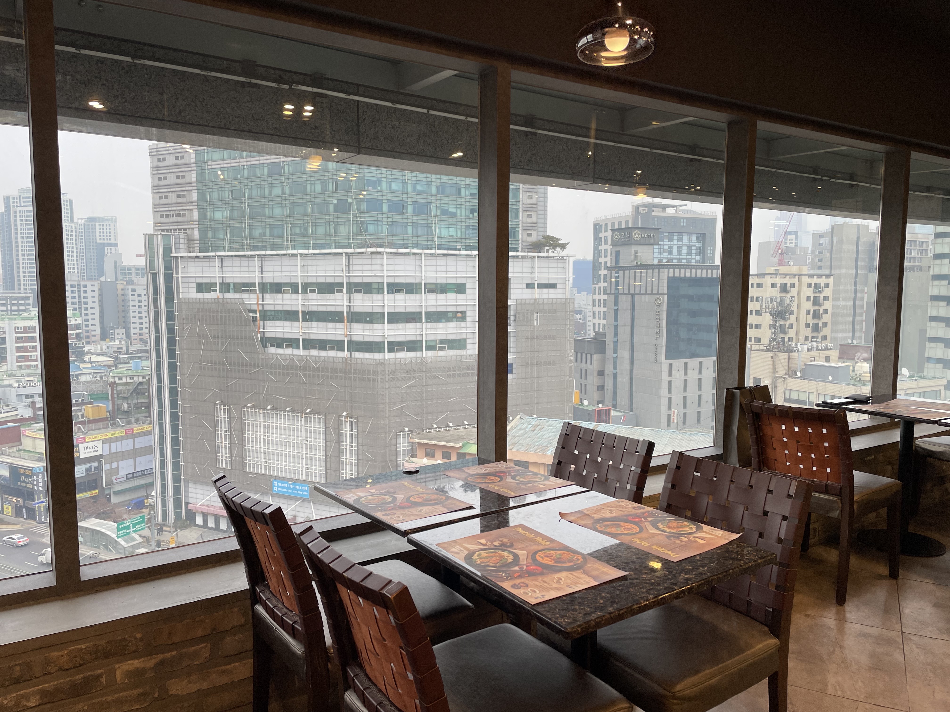 저희가 갔을 때 한팀정도 밖에 없어서 사진을 마구 찍을 수 있었어요! 매장이 상당히 넓었고요, 좌석도 많았고 무엇보다 창가 자리가 마음에 들었는데, 창가 자리로 안내해주셨답니다~! 이 날 미세먼지가 심했어서 하늘이 보이진 않았지만요..