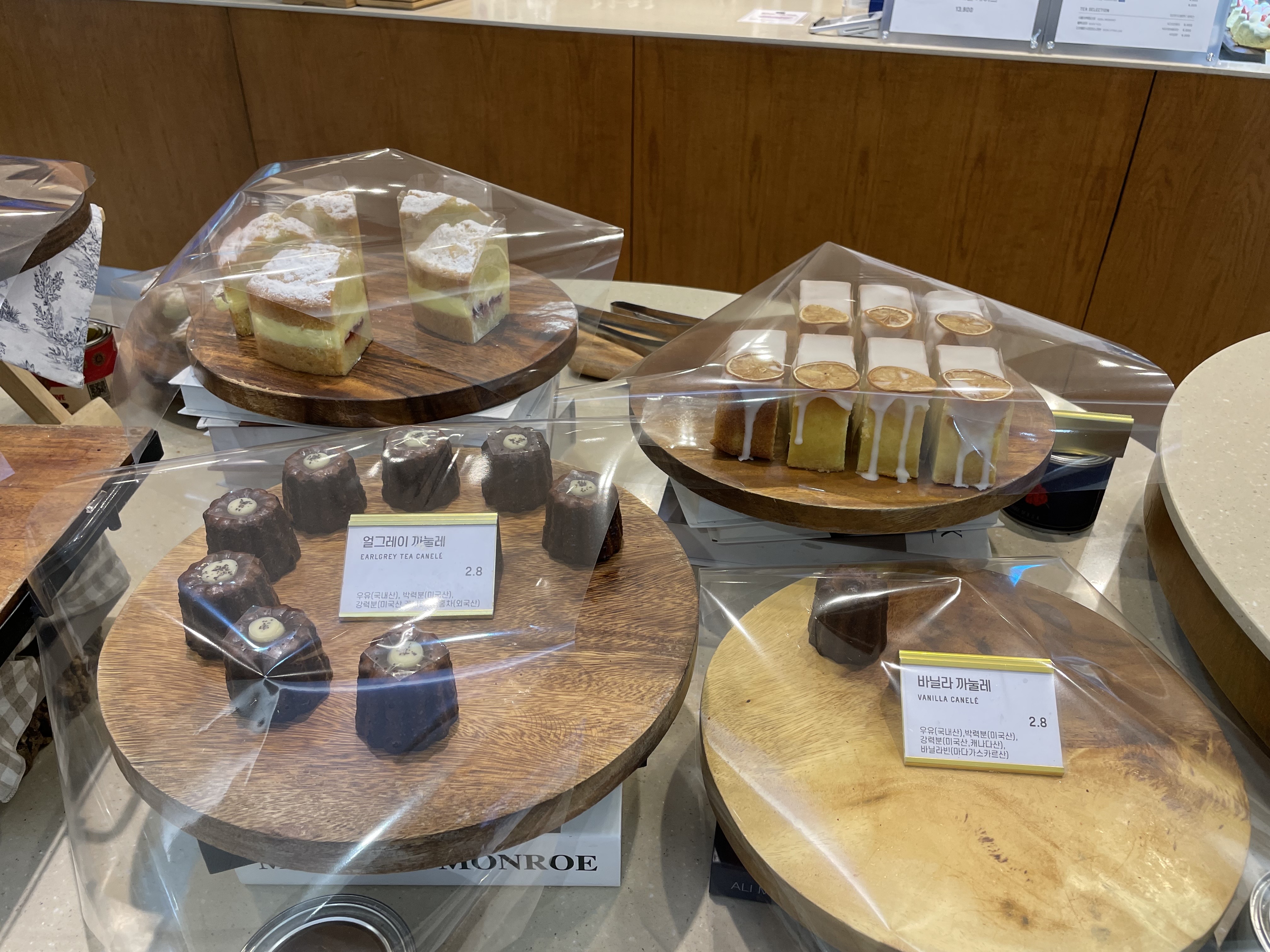 쿠키부터 케이크 크루아상, 까눌레까지 여러 종류 디저트가 있었어요. 무엇보다 다른 곳들과는 다르게 비닐로 덮여있어서 마음에 들었어요! 안 그래도 요새 코로나 때문에 위생에 예민한데, 이 점이 마음에 들었어요!