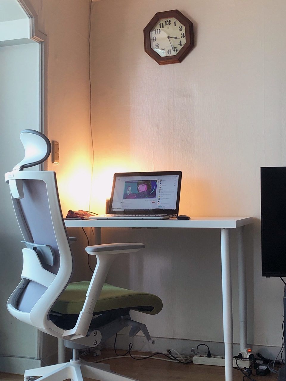 저의 시트 컬러 선택은 역시 가장 무난한! 라이트 그레이입니다. 그리고 제가 제일 걱정했던 부분이, 의자 부피가 크고, 제 방 책상과 침대 사이 폭이 좁아서 굉장히 걱정했는데 생각보다 여유롭더라고요! 앉아서 뒤로 기대는 것도 가능했습니다. 요즘 코로나로 인해 재택근무로 집에서 일하는 시간이 많아졌는데, 재택 아이템으로 가장 중요한 책상 의자! 시디즈 T50 화이트 쉘 강력 추천합니다. 그리고 저는 다른 곳들보다 아주 저렴하게 구매해서 기분이 좋답니다.
