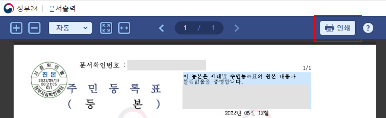 주민등록등본 PDF로 저장하는 방법