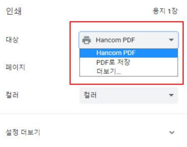 6. 인쇄 버튼을 누르면 출력을 할 수 있는데요. PDF 파일로 저장을 원하시는 분들은 인쇄 버튼을 누르시고 프린터 목록을 열어보시면 PDF로 저장 버튼이 있습니다. PDF로 저장을 눌러주시면 파일로도 저장이 가능하니 참고하시면 좋을 것 같아요!