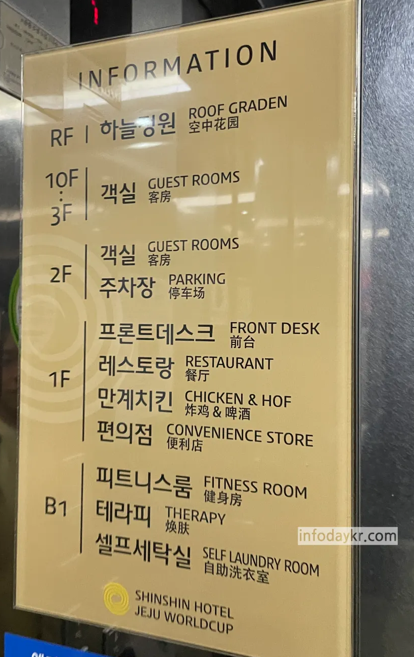| 1F | 프론트데스크,레스토랑,만계치킨,편의점(24시간) |