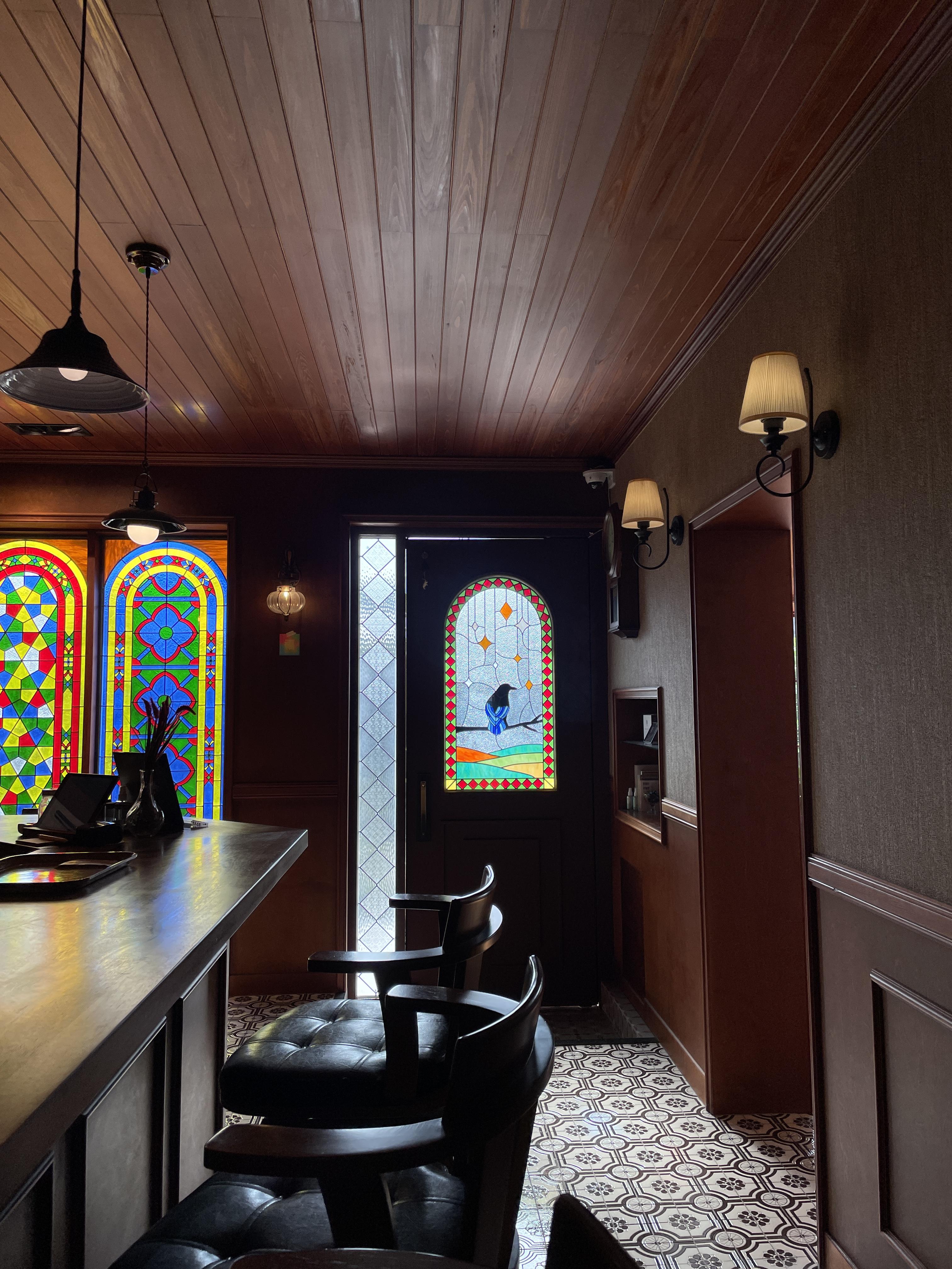 그리고 스테인글라스 인테리어가 제레미랑 비슷했는데, 커피 맛집의 공통점일까요?ㅎㅎ 스테인글라스 인테리어가 햇빛에 비치면 느낌이 너무 좋더라고요!