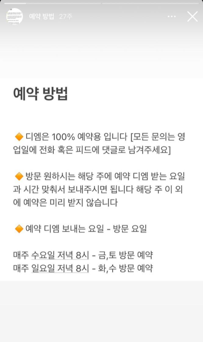 사장님 인스타그램에서 예약방법을 캡처했습니다. 위 양식에 맞춰서 미리 작성하신 다음에 네이버 시계 켜놓고 정시되자마자 DM을 보내면 됩니다! 꼭 네이버 시계를 켜놓고 정시에 보내주세요 그래야 당첨 확률이 높아져요! 그리고 테이블당 이용시간은 1시간인데요, 짧다고 생각되긴 하지만 아무래도 운영하는 시간이 짧아서 그런 것 같아요. 예약 성공하신 분들은 꼭 예약시간에 늦지 않게 방문하셔서 즐기시길 바랄게요! 제 지인은 예약시간보다 조금 늦어서 엄청 촉박하게 먹고 나왔다고 하더라고요. 힘들게 예약하셨으니 온전히 즐기시고 오시길 바랄게요!