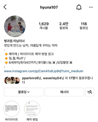 운영시간 : 13:00 - 17:00 (매주 일,월,목 휴무), 100% 예약제