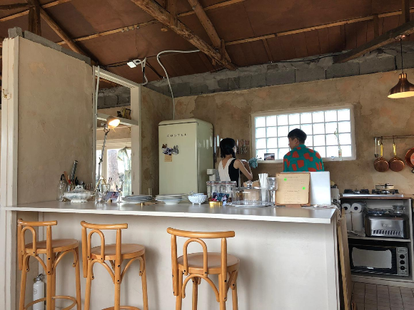 그리고 미남미녀는 오픈 주방이에요. 남자 사장님이 디저트를 만드시고, 여자 사장님께서 서빙해주시는데 두 분 다 너무 친절하시답니다. 제주살이 하던 친구들이랑 종달리 때부터 꾸준히 갔더니 저희를 알아봐 주셨지 모예요! 지금은 안 간 지 너무 오래돼서 잊으셨을 수 있지만요. 사장님들 건강하시고 오래오래 해주세요!