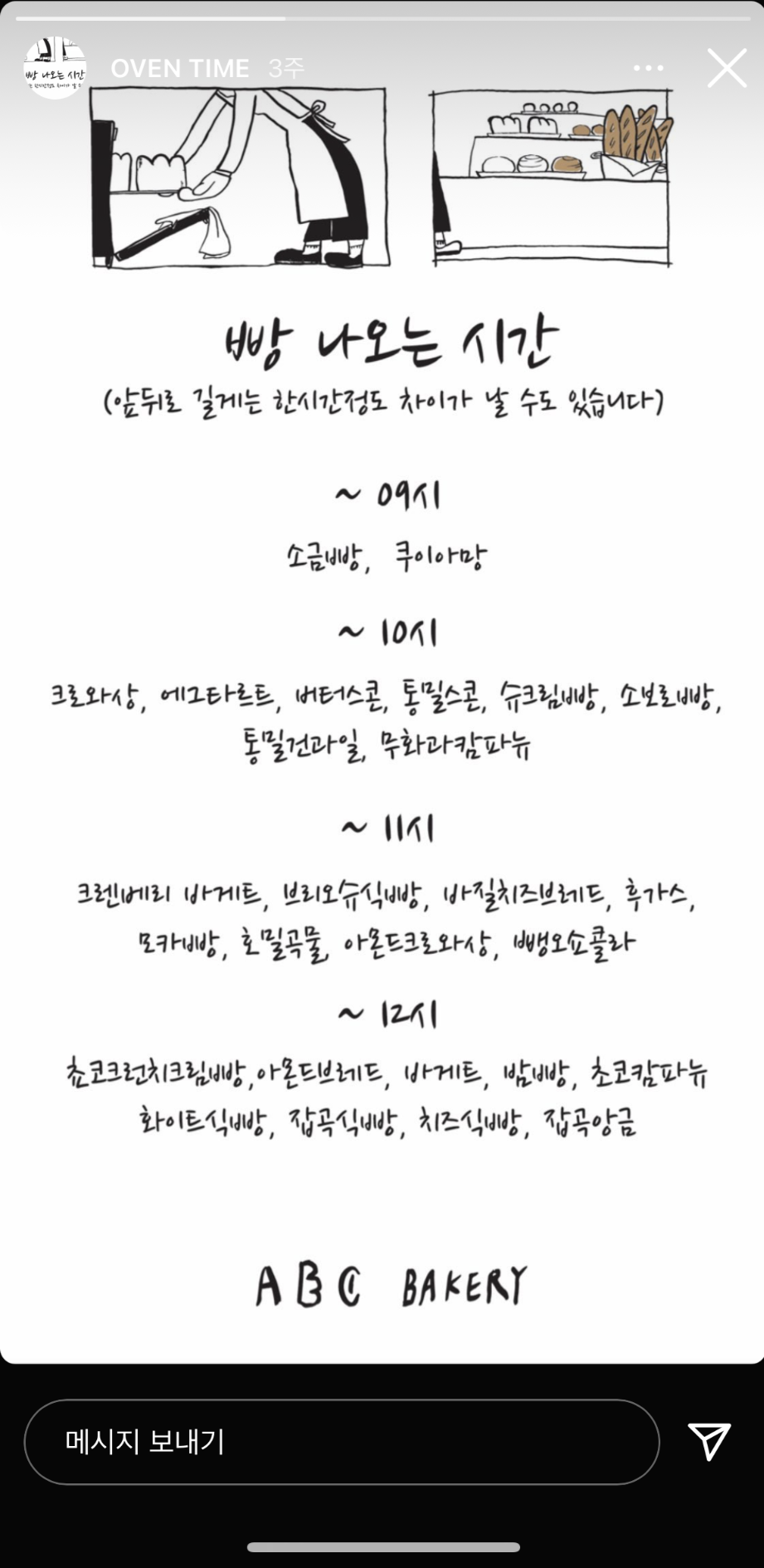 에이팩토리 인스타에서 캡쳐한, 빵 나오는 시간입니다. 꼭 먹어보고 싶은 빵이 있으시다면 시간 맞춰서 가는 걸 추천드려요! 소금빵은 9시에 나온다고 되어있었는데, 제가 간 시간에도 꽤 있었어요!