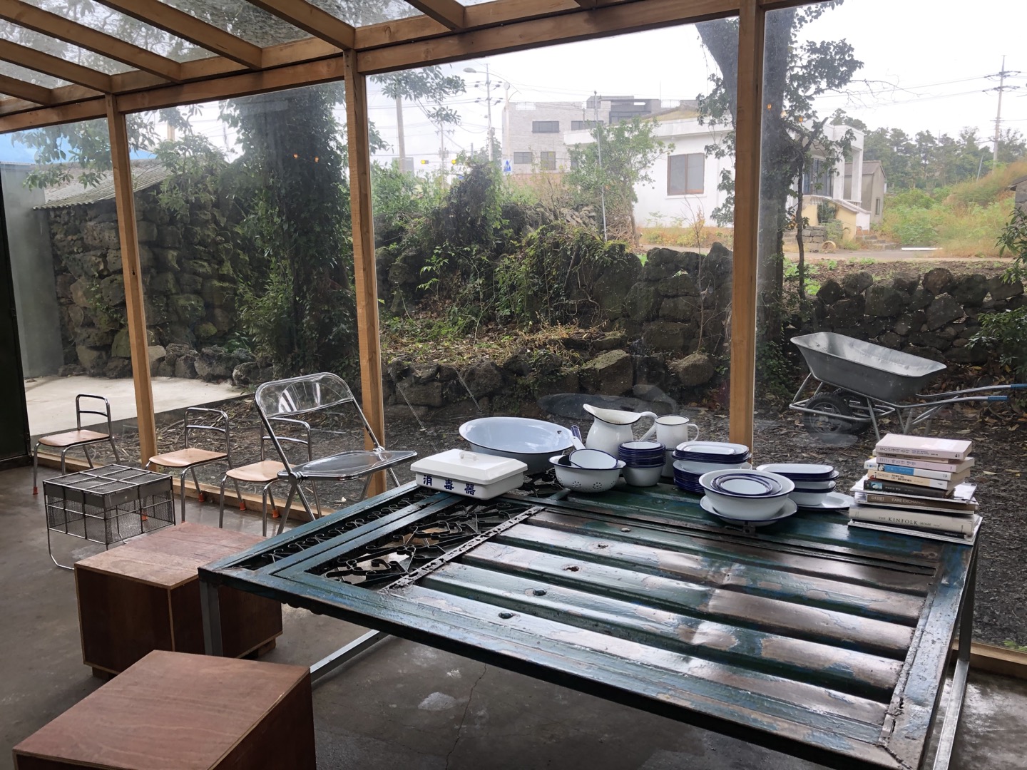 저희가 있었던 공간 내부입니다. 자유로운 분위기지만 공간에 맞는 의자와 테이블, 그리고 오래된 철제로 된 테이블은 창고 느낌도 나지만 조화로웠어요!!