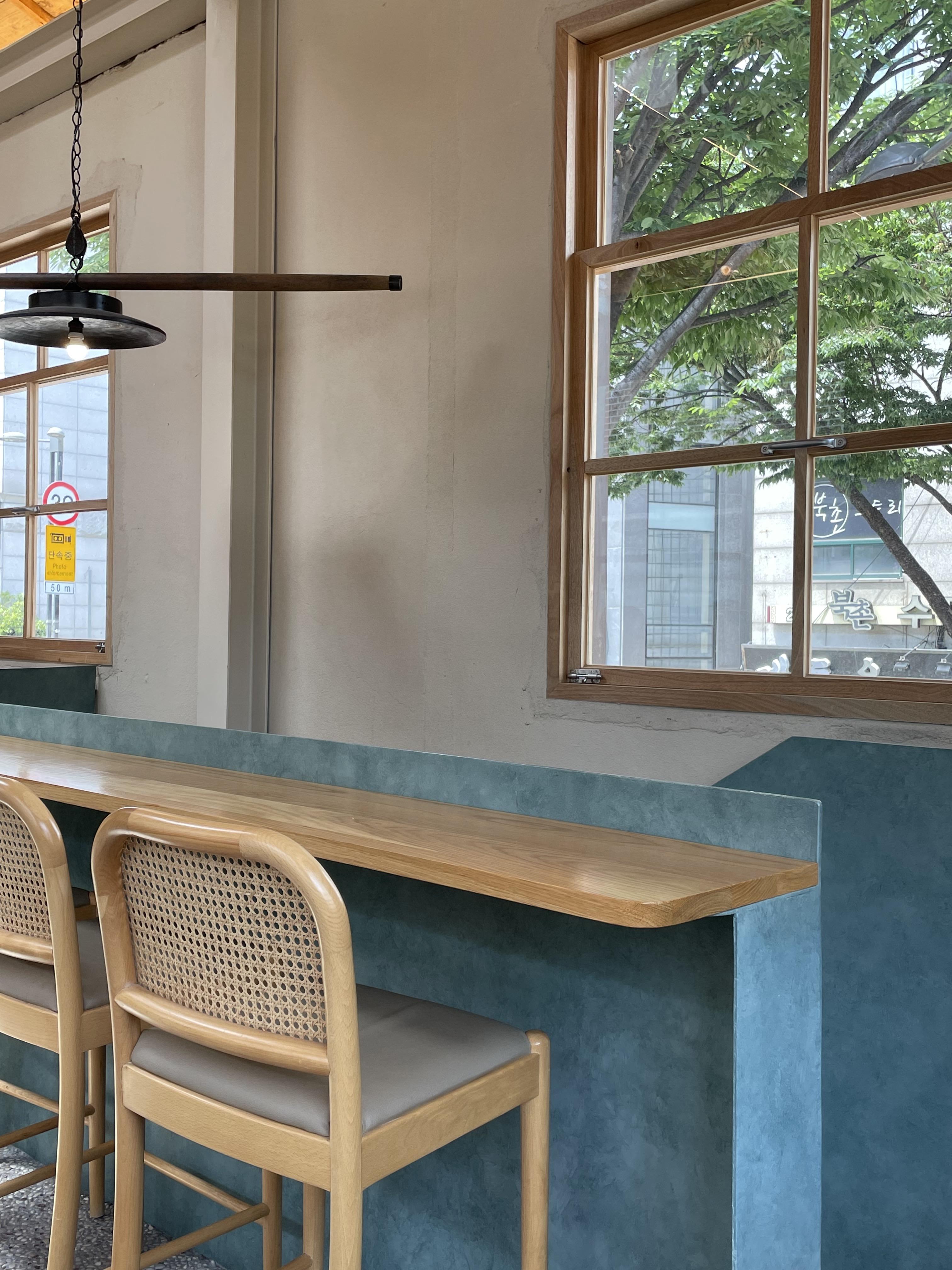 전체적인 공간을 담지는 못했지만, 엄청 크진 않았구요. 전체적으로 곡선과 청록색 느낌이 너무 좋더라구요. 같이 간 친구가 청록색을 참 좋아하거든요~ 물론 저도 좋아하구요! 분위기 있었어요!