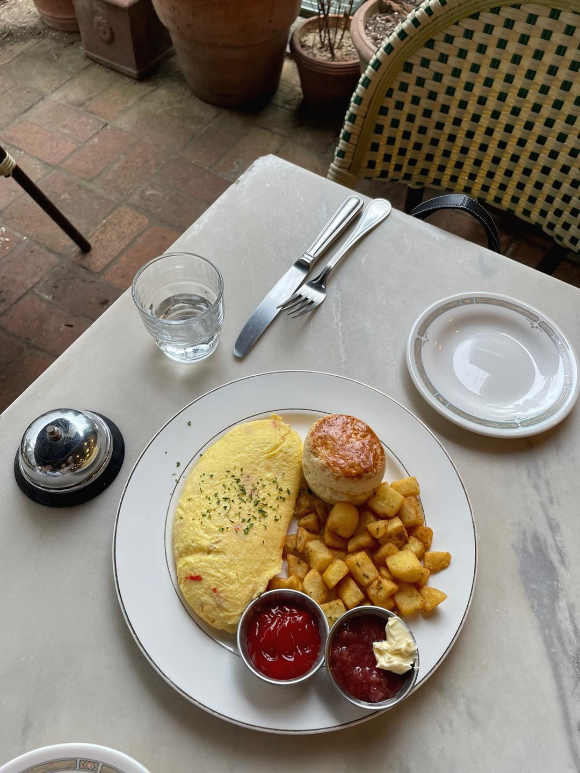 오믈렛,스콘,잼,버터,구운감자,케챱 구성으로 되어있는 마이쏭 오믈렛입니다. 오믈렛 안에 필링을 2가지 선택할 수 있는데요. 저희는 체다치즈랑 토마토를 추가했어요! 오믈렛은 쏘쏘였고, 스콘에 잼을 발라먹으니까 진짜 맛있더라고요.