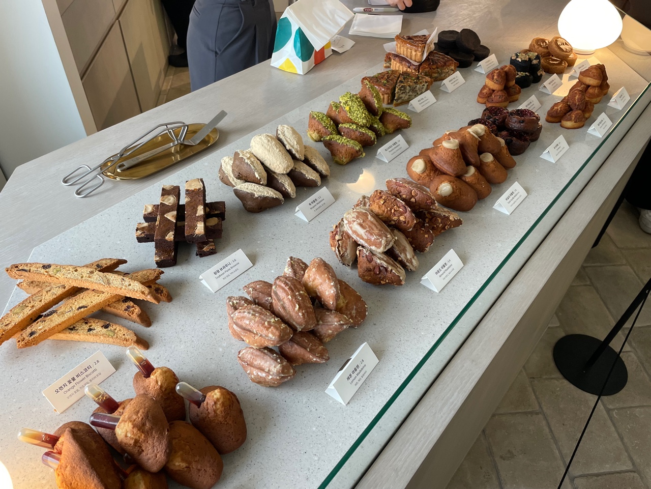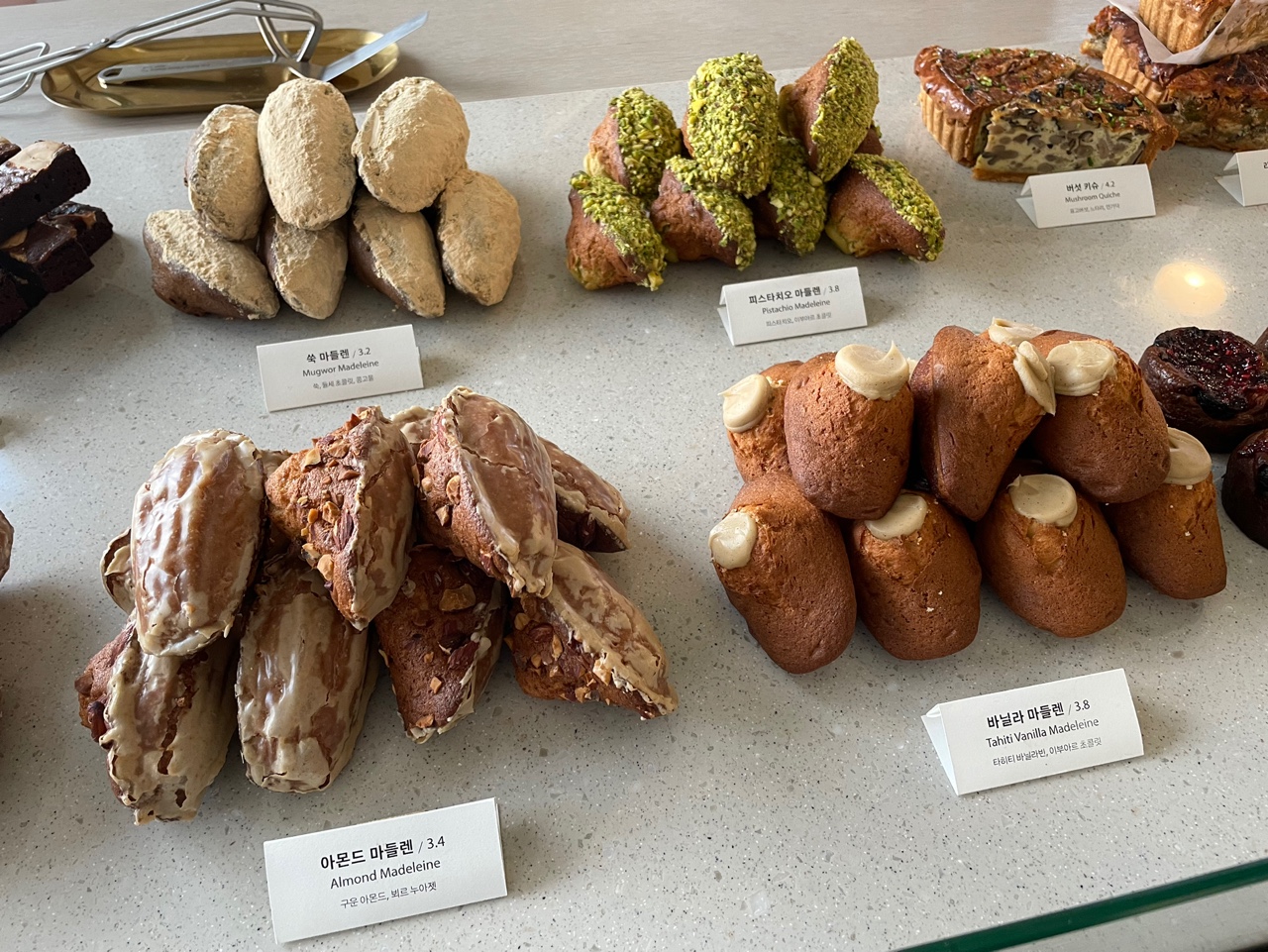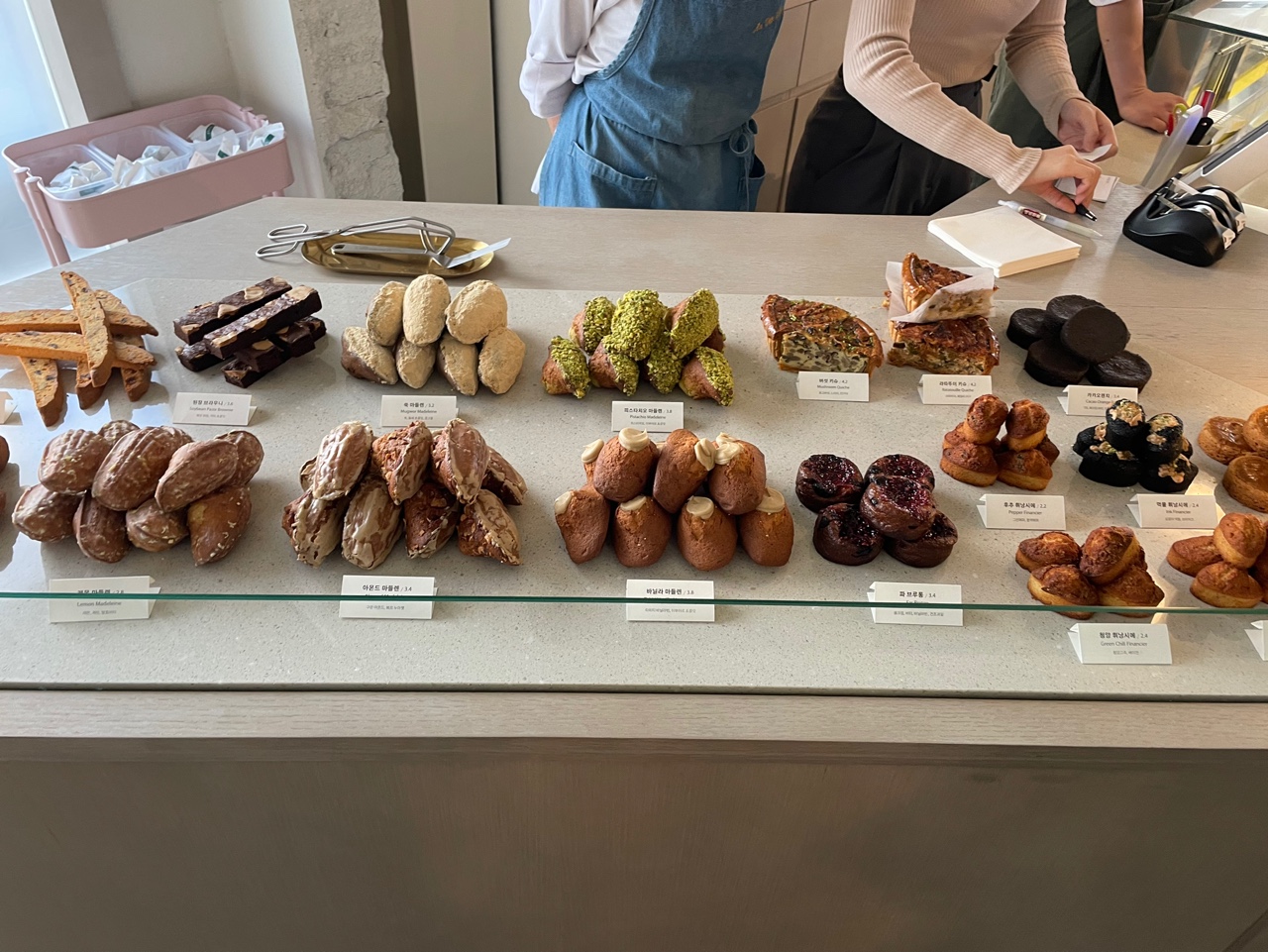 한 쪽은 구움과자류들이 였어요, 저는 바닐라 마들렌, 피스타치오 마들렌, 밤꿀마들렌 을 구매했구요. 한참 뒤에 친구가 청양 휘낭시에 맛있다고 연락이 왔는데 너무 늦게 봐서 못샀어요! 종류 별로 다 사볼껄 그랬어요.. 뒤늦은 후회... 가시는 분들은 저처럼 후회마시고 먹고싶은 것들 몽땅 사세요!!
