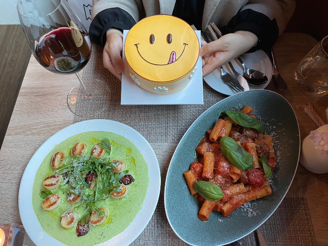 그리고 저희는 둘이어서 바틀 와인은 주문을 하지 못했고, 1인 1 글라스 와인을 주문했답니다. 음식이랑 와인이랑 너무 잘 어울려서 먹는 내내 기분이 좋았답니다. 또 이 날 제 생일 기념으로 예약한 거여서 노티드 케이크를 가져갔는데 사장님께 양해를 구하고 잠시 사진만 찍으려고 꺼냈어요! 따로 초를 불거나 하진 않았답니다. 그리고 다른 이야기지만 참고로 노티드 연남점엔 케이크를 판매하지 않으니 꼭 참고하세요!