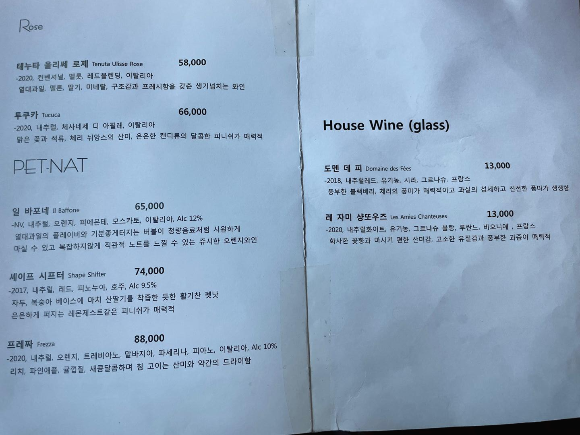 왼쪽은 식사 메뉴판이고요, 오른쪽은 와인 메뉴판이에요! 와인 메뉴판은 조금 더 있었지만 글라스 안내가 있는 페이지만 찍었어요! 우디네 주말(금, 토, 일) 디너를 예약하시는 분들은 바틀 와인이나, 1인 1 글라스 와인 주문이 필수이니 이 점 참고하시면 좋을 것 같아요!