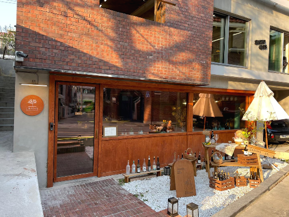 우디네는 합정역 7번 출구에서 조금 걸어가야 합니다. 합정역 7번 출구는 처음 가보는 곳이었는데, 조용한 주택가 안쪽에 있더라고요! 우디네는 1층에 자리 잡고 있는데, 외관이 너무 분위기 있죠?! 아기자기하게 꾸며놓기도 했고, 나무 느낌이 너무 좋은 것 같아요.