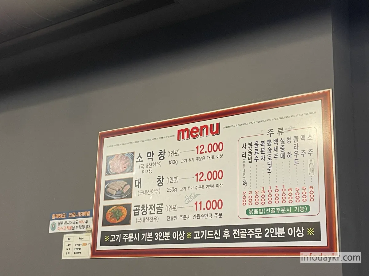 그렇지만 아쉬웠던 점은 막창/대창 주문 시 기본 3인분 이상 주문해야 한다는 점이었어요!