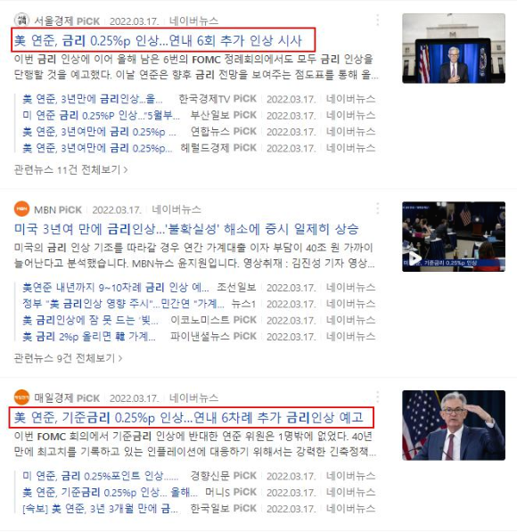 그리고 지난 모두가 주목했던 3월 FOMC 회의에서 미국 기준금리 0.25% -> 0.5% 금리인상을 발표했었죠. 25BP 인상한 것은 러시아 우크라이나 사태로 인한 지정학적 리스크에 따른 단기 불확실성이 있기 때문이라고 언급했습니다. 러시아와 우크라이나 간 협상이 잘 이루어지거나, 전쟁이 종결되지 않으면, 5월과 6월에 가파른 금리인상(50BP) 이 단행될 것으로 예상됩니다. 또한 앞으로 남은 6번 회의에서도 추가적 인상을 예고하였습니다. 금리인상이 누적될수록 경제에 미치는 영향이 상당이 클 것으로 예상됩니다.